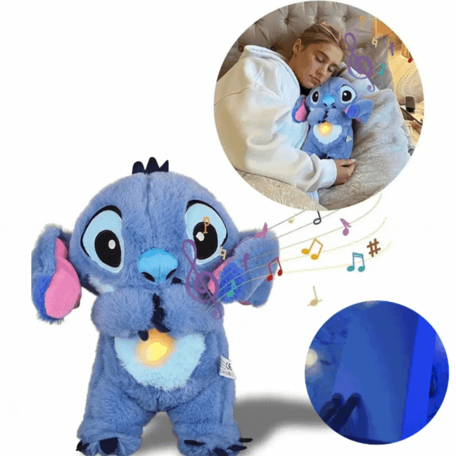 Fabricado con materiales ultra suaves y diseñado con un mecanismo de respiración realista, este Stitch no solo es adorable… es terapéutico.